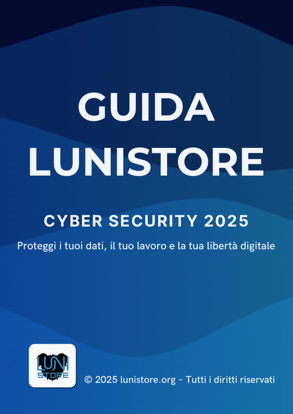 La Guida PDF "LuniStore – Cyber Security 2025" nasce per aiutare professionisti e freelance a difendere la propria privacy e sicurezza digitale in modo semplice, pratico e sostenibile.All'interno della guida (di circa 70 pagine) scoprirai come: Proteggere i tuoi dispositivi e i tuoi dati personali. Riconoscere truffe, phishing e minacce informatiche reali. Gestire password, backup e documenti in modo professionale. Usare VPN, antivirus e antimalware in modo efficace. Lavorare da remoto in totale sicurezza. Controllare e ridurre la tua impronta digitale online e reagire con lucidità in situazioni di rischio (furti, virus e ransomware).